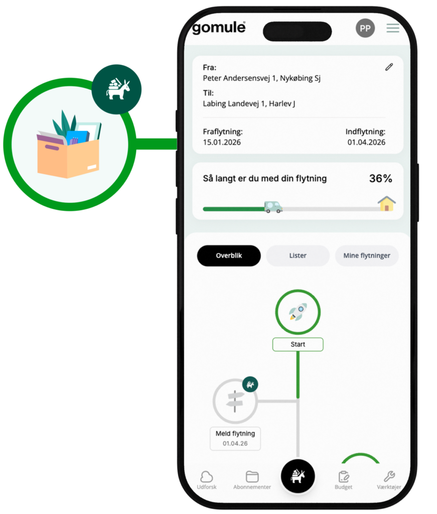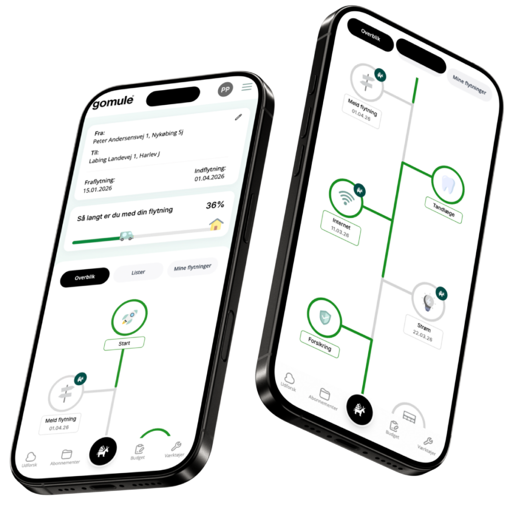 Heldigvis findes der hjælp. Med gomule kan du samle alle dine flytteopgaver ét sted og bevare overblikket gennem hele processen. Her kan du oprette en personlig flytteliste, hvor alt fra at flytte din adresse til forsikringer og aftaler bliver samlet og gjort nemt at overskue.